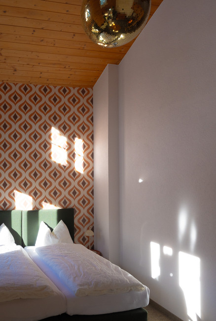Mit viel Liebe zum Detail konzipierten Carole und Philip das Waldhuus Bellary neu im freigeistigen Stil der 70er Jahre. Überall begegnen einem die ikonischen Muster dieser Ära. Orange-braune Töne, geometrische Formen und verspielte Details wie eine Discokugel. Viele alte Möbelstücke wurden liebevoll neu gepolstert und fügen sich harmonisch in das Retro-Konzept ein. Der Vibe des Waldhuus begeisterte uns und wir verliebten uns in die durchdachte, harmonische Gestaltung.